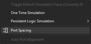 When selecting a port the options relevant to the that kind of port and object are made available.