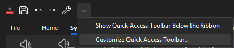 Additional options may be added to the quick access toolbar by right-clicking on a ribbon menu option (such as Compile, Connect, or Zoom) to open the Menu Context menu and select the Add to Quick Access Toolbar option. Alternatively, click on the quick access drop-down menu and select Customize Quick Access Toolbar option to open the Quick Access Toolbar Customization dialog.