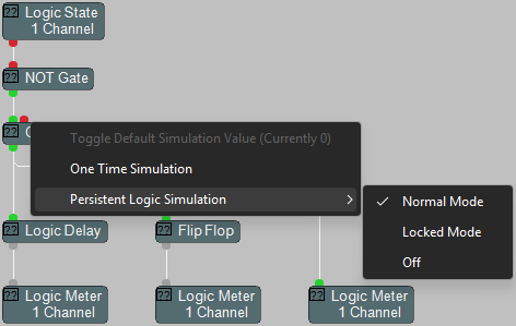 Similar to the Persistent Signal Path Identifier, the Persistent Logic Simulation allows you to test logic behavior while offline. Right-click on a logic port to activate the simulation mode. Logic Simulation is available in: