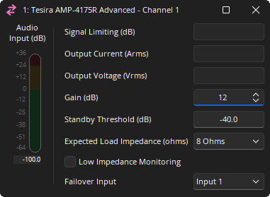Analog Failover: Configures the amplifier input card for failover. If 8 channel amplifiers are used the additional EIC cards require specifying.