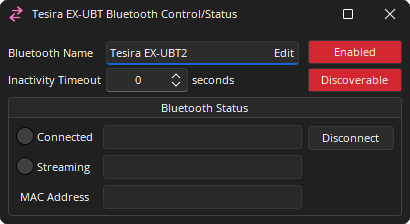 MAC Address: The Bluetooth MAC address of the EX-UBT device displays to confirm which device is paired/connected.