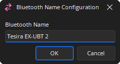 Bluetooth Name: The Bluetooth Name is changed by clicking the "edit" button. The name displays in the device list when pairing the EX-UBT with a 3rd part device. The Bluetooth Name is changed by clicking the "edit" button. The name displays in the device list when pairing the EX-UBT with a 3rd part device.