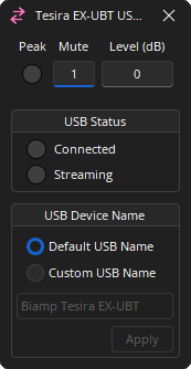 The Tesira EX-UBT is a remote-proxied hardware device that provides a USB and Bluetooth interface to connect USB host devices to the Tesira AVB network.