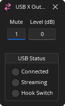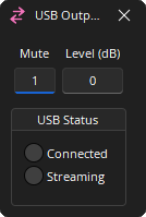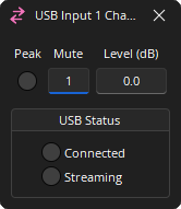 USB Status: Displays Connected and Streaming status. Dark: Off / Green: On.