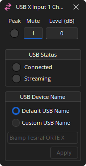 Use USB: This checkbox is fixed on the TesiraFORTÉ X initialization.