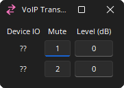 Level (dB): Adjusts the relative input volume. VoIP Receive range is -100 to 12 and the VoIP Transmit range is -100 to 0.