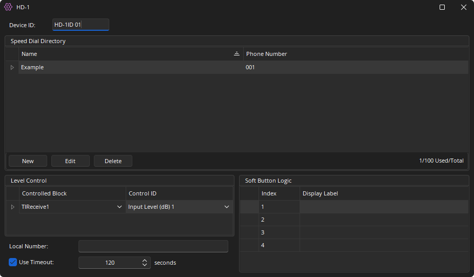 Note: Soft Button Logic and Local Number entries are reflected on the HD-1 hardware screen.