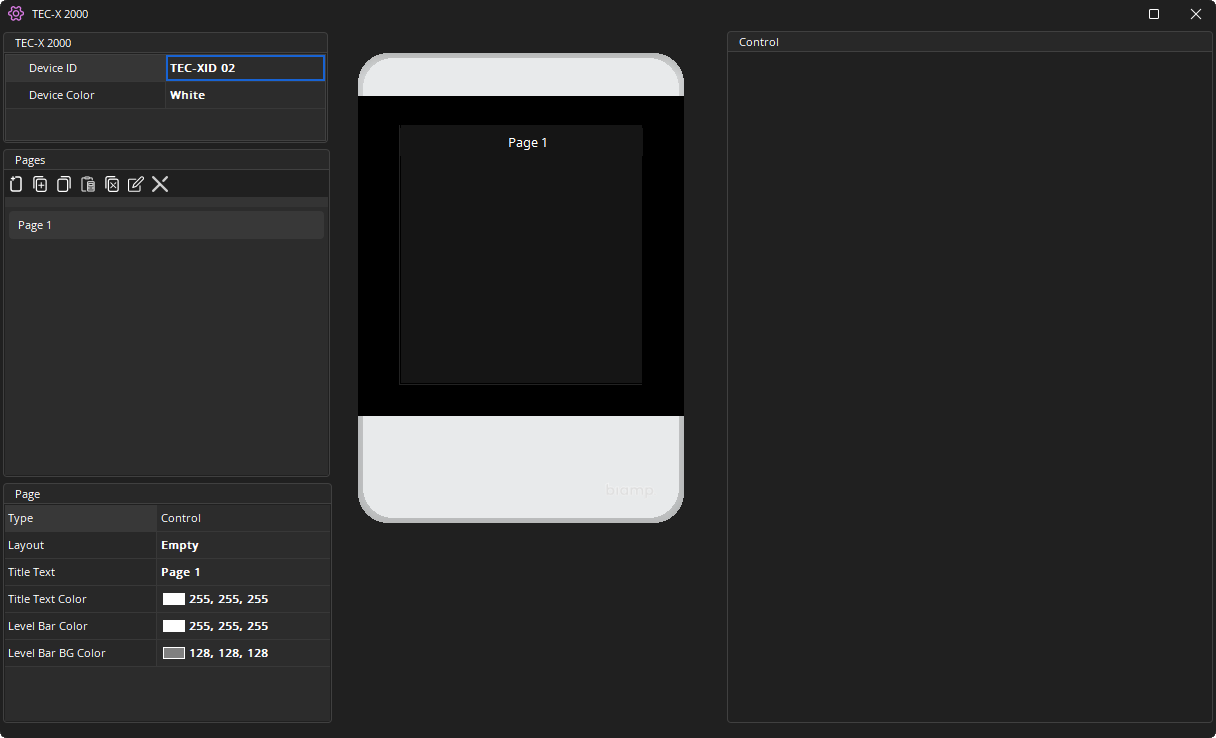 The TEC-X 1000 pages support up to 6 buttons per page and TEC-X 2000 pages supports up to 12 buttons per page. Controls can't be utilized without a layout that includes at least one button (or the rotary knob) selected.