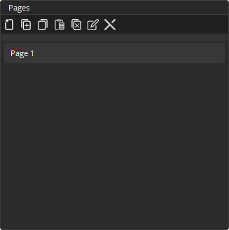 Add: Creates a new page. Page type, layout, and name can be selected from the add new page prompt. If a name is already used for another page the lettering will turn red and the OK button will become inactive.