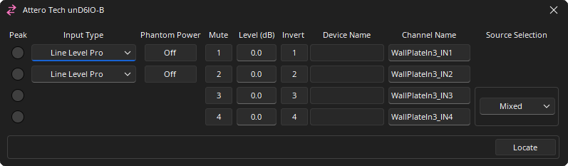 | unDX4I-B | Channels 1-4 | Line Level Pro | 0dB (pad active) | -18.0 |