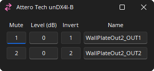 The Attero Tech unDX210+-B, unDX41-B, and the unD610-B Dante wall plates makes use of dedicated Attero Tech Wall Plate Component processing objects in Tesira software. See the article Configuring Attero Tech Dante wall plates on Cornerstone for additional information.