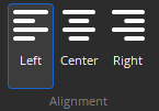 Provides options for aligning text to the left, right, or center of component or text objects.