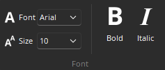 Provides options for lettering styles, sizes, bold, and italics for use in component or text objects.