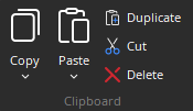 Duplicate: Places a copy of the selected Component or Text Object directly into the Layout. Duplicate also places a copy of the object into the Clipboard.