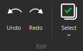 Select: Drop-down menu with various selection options. See the Object Selection section of Workspaces for additional details about utilizing selection.