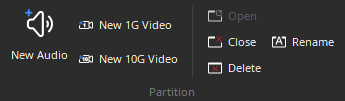New Audio: Creates a new audio partition, which creates a new tab in the working system layout.