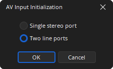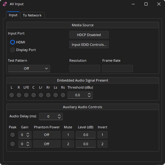 Note: The minimized state of the AV Input dialog will show the 8 Embedded Audio Signal Present LEDs and their labels.