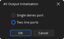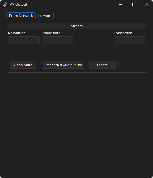 The minimized state of the AV Output dialog will show the 8 Embedded Audio Signal Present LEDs and their labels.
