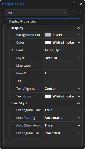 Only Display Attributes are shown for Line (component connections) Properties.