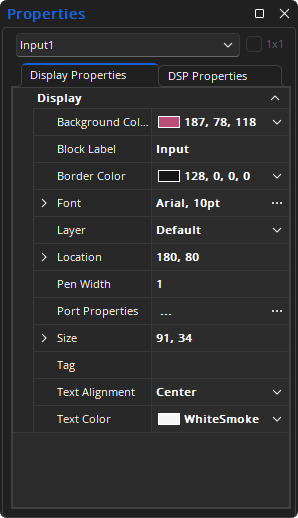 Note: There are DSP Attributes that are specific to certain blocks or types of blocks, such as Delay EQ Group or Enable Sleep Mode, that will only be visible while those blocks are selected. Details about those attributes are available in the Control Dialog or Properties sections of those specific components.